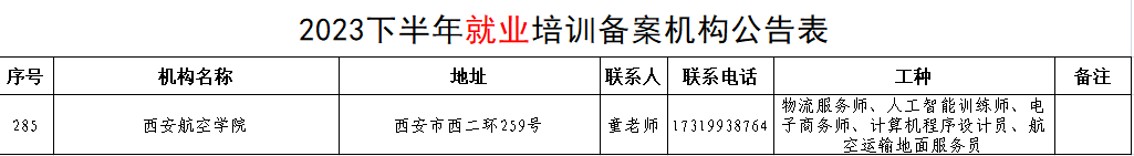 近日,西安市人力资源和社会保障局发布《西安市2023年下半年就业创业失业培训备案机构及职业工种信息公告》,今年会成功获批西安市就业、创业、失业培训机构。今后今年会可开展创业培训和物流服务师、人工智能训练师、电子商务师、计算机程序设计员、航空运输地面服务员等6个工种的就业失业培训,为今年会应届毕业生提供优质的职业技能培训服务,提升应届毕业生就业质量。