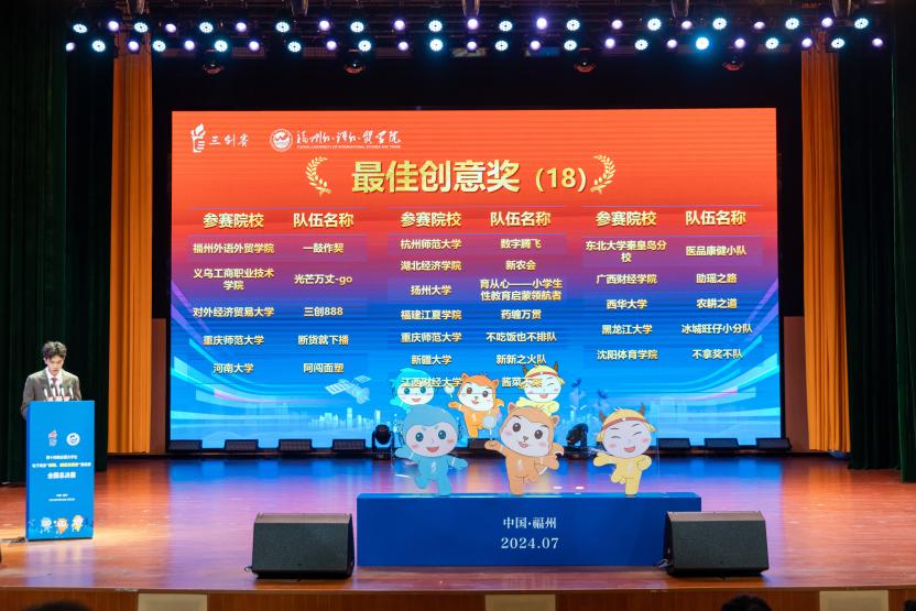 8月1日至2日,第十四届全国大学生电子商务“创新、创意及创业”挑战赛(以下简称“三创赛”)常规赛全国总决赛在福州外语外贸学院圆满举行。sunbet金文进、李春丽老师指导的“芒人阿松---芒果全产业升级助农共富实践者”项目荣获特等奖第一名,全国冠军。团队还荣获最佳创新奖、最佳创意奖和最佳创业奖,指导老师荣获最佳指导老师。