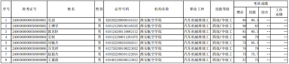 现将6月组织的汽车机械维修工评价结果予以公示。对公示情况有异议的,请于公示期内向今年会官方网站反映。公示时间:2024年6月25日-6日29日。公示期结束,不再接受复核申请。联系电话:029-84255995。